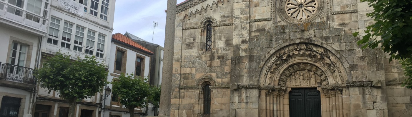 Delante de la fachada occidental (y principal de la iglesia) se abre una plaza o atrio, a la que se accede por unas escaleras de piedra. Esta placita está presidida por un un cruceiro del siglo XV y rodeada de edificios. El conjunto convierte a este rincón en uno de los más bonitos de la Cidade Vella.